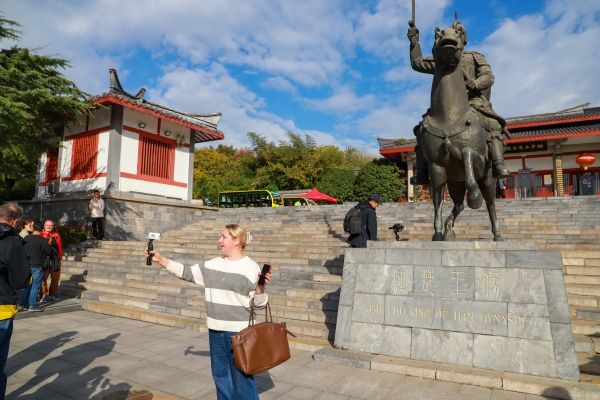打卡的第一站是徐州汉文化风景区。这里是汉文化的发祥地,有五千年的文明如运河流淌,有两千六百年的建城史如汉代遗址。昔日汉高祖刘邦执剑立鼎这里,白居易、苏轼等文人墨客曾在此留下不朽诗篇。