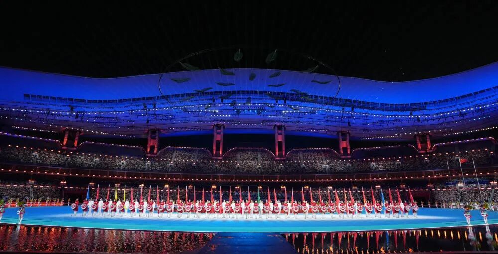 在 ent仪式结束后,广东省体育代表团、香港特别行政区体育代表团、澳门特别行政区体育代表团入场。图片提供:新华社记者胡胡胡。
